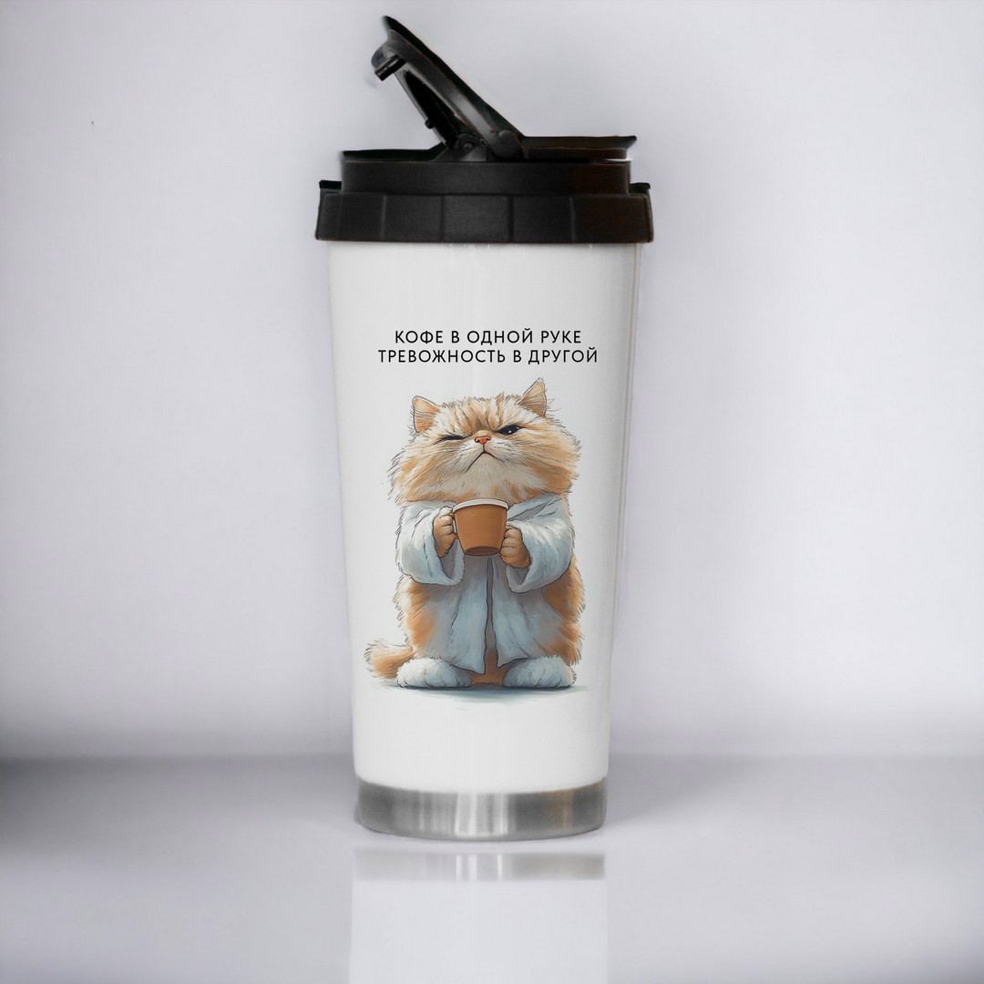 Термостакан объемом 480 мл.из Коллекции "Кофе, Коты и Пирожки"