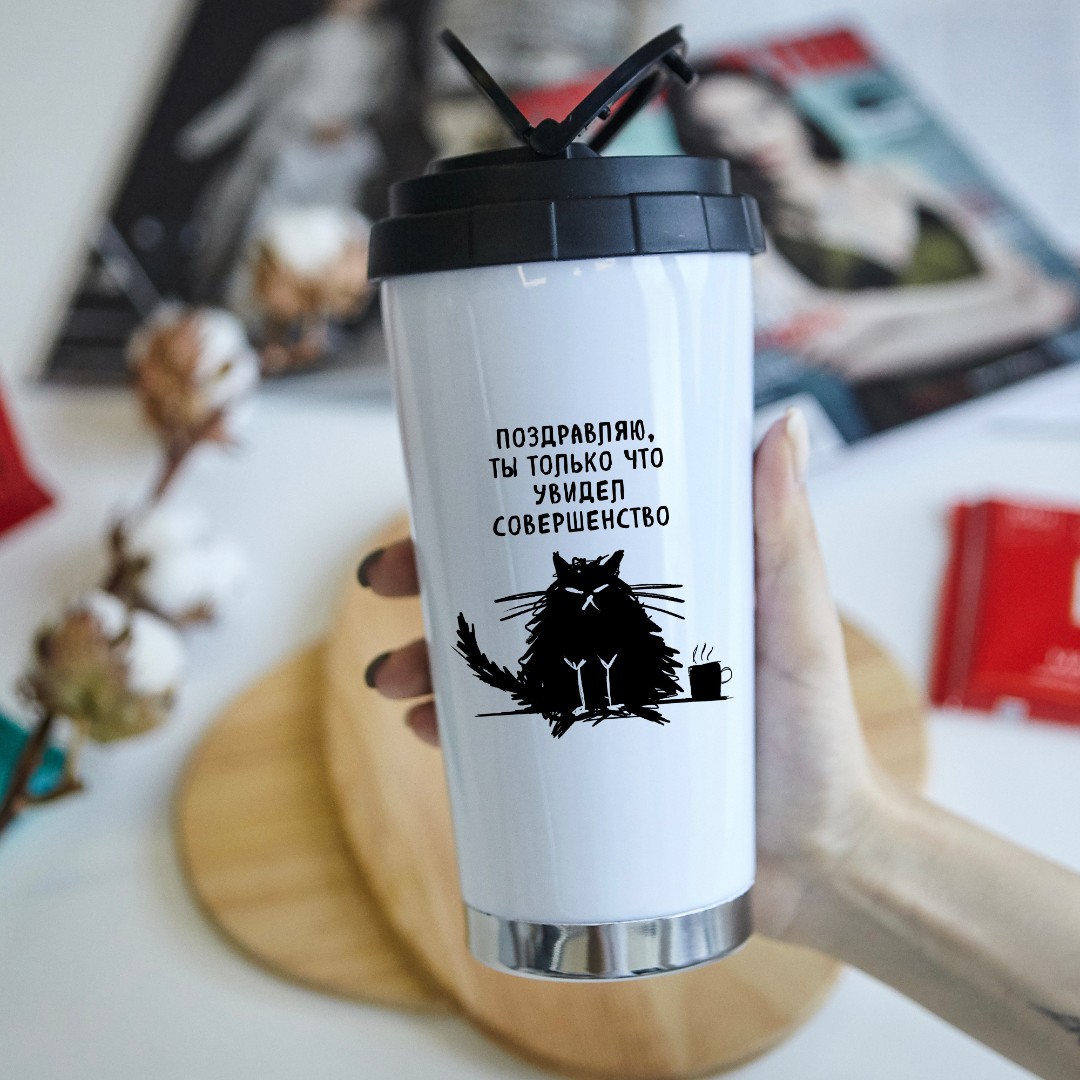 Термостакан 480мл. "Поздравляю, ты только что увидел совершенство"